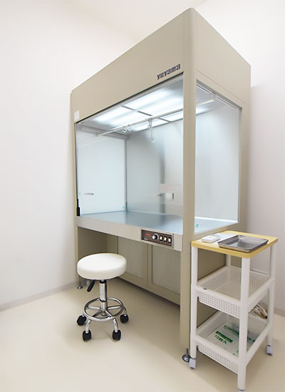 当薬局は三田市で唯一、医薬品や薬剤を無菌条件下で調剤(混合・製剤)するための専用の部屋を所有し、クリーンベンチを設置しています。